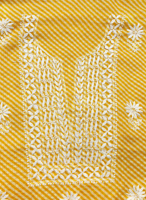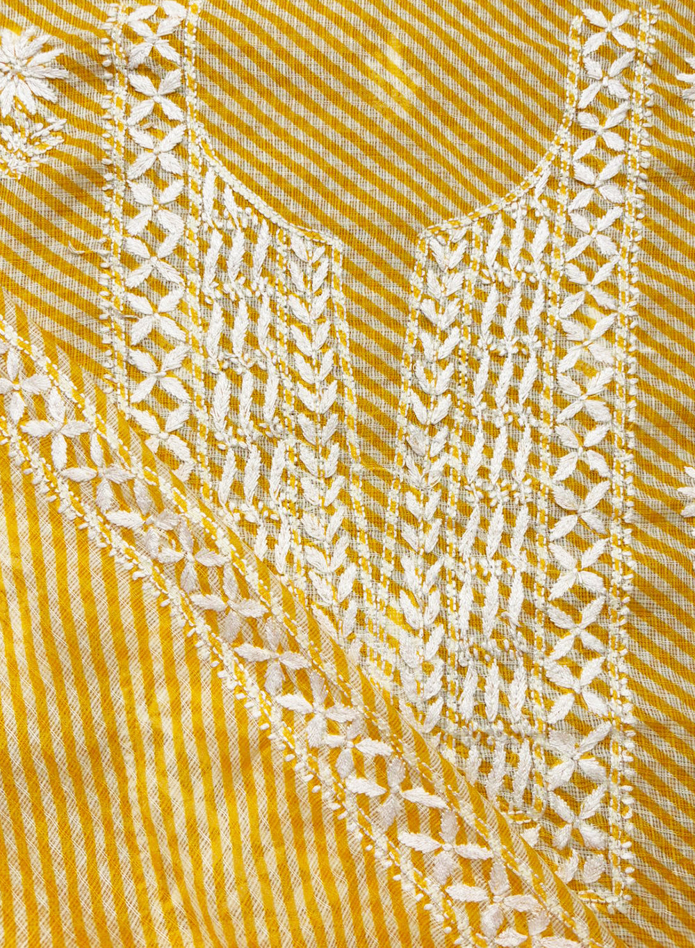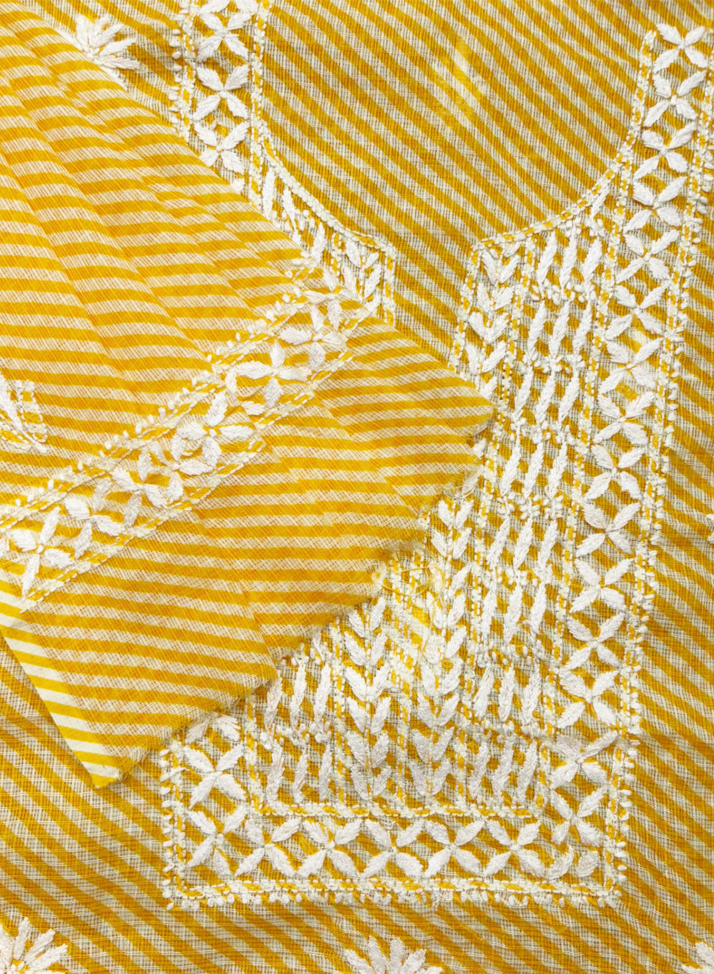 Yellow Lehariya - Nayaab Kota Cotton Chikankari Kurta & Dupatta Set