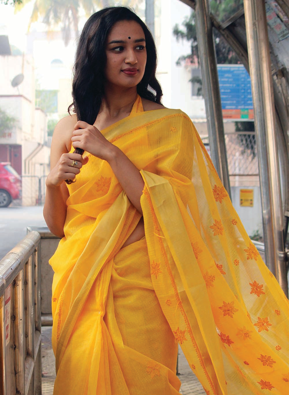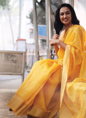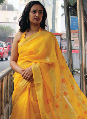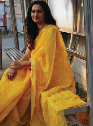 Yellow Zari Kota Chanderi - Aks Cotton Chikankari Saree