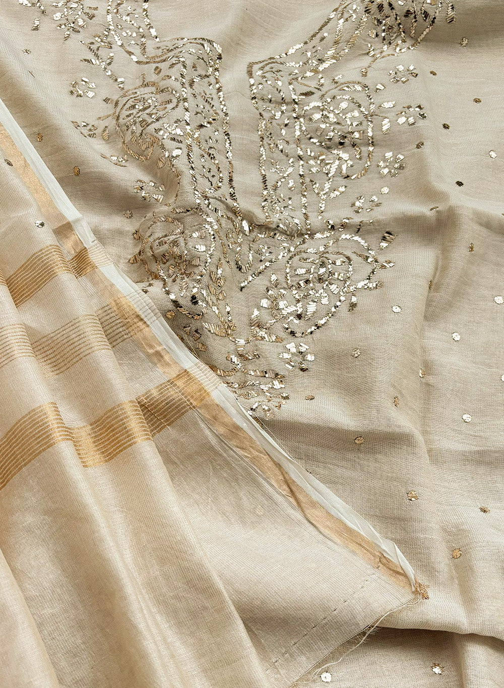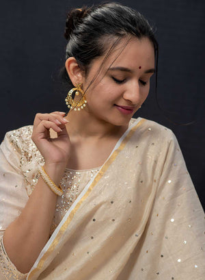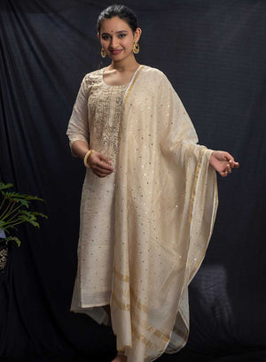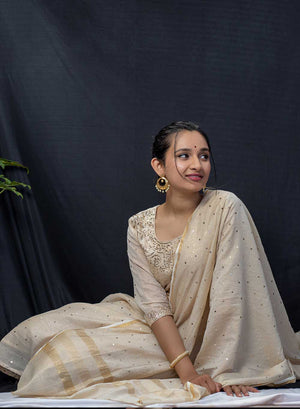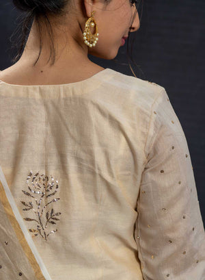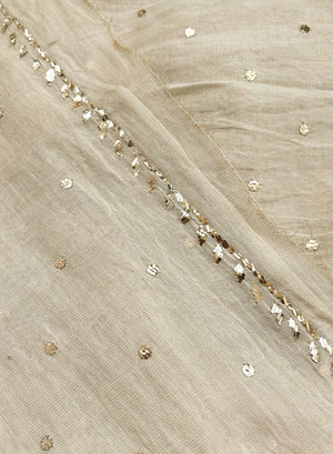 Zaara, is a Stunning Tissue Chanderi, beige unstitched kurta and dupatta set, which has been one of our most beloved creation.