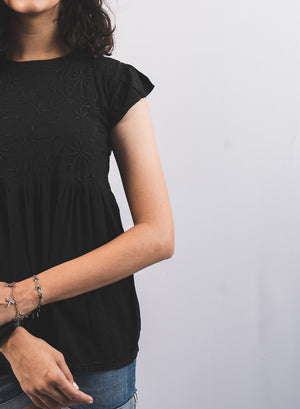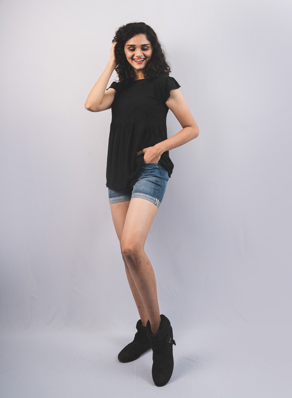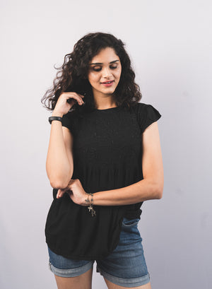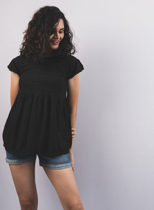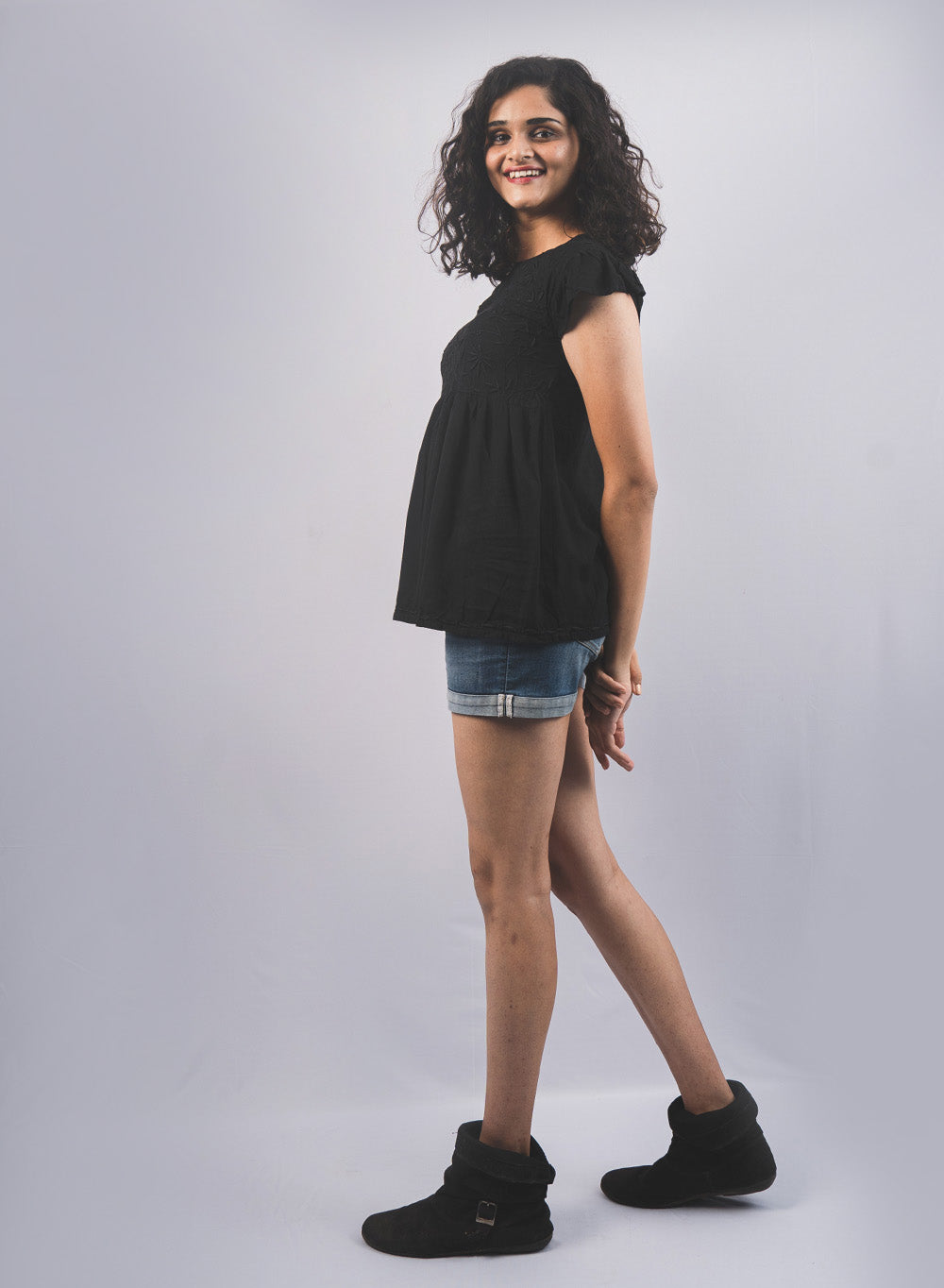 Zia means light. The soft light pastel hues of our Zia Modal Chikankari Short Tops are adorned with a beautiful floral, cotton self thread Chikankari hand embroidery.